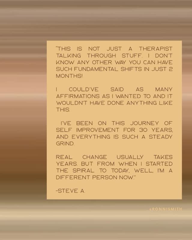 “Working with Ronni felt like everything that was happening in my life was building up each week to the topics we would then clear each session. It was uncanny.